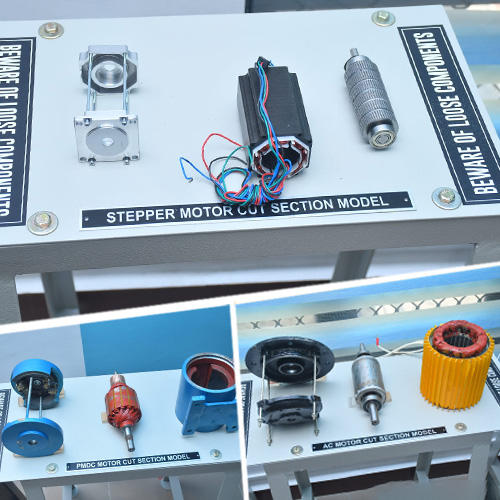 Our Laboratory is equipped for an in-depth examination and analysis of various motor types, including DC, Stepper, BLDC (Brushless DC), PMSM (Permanent Magnet Synchronous Motor), and SRM (Switched Reluctance Motor). This state-of-the-art facility allows for a comprehensive study of internal motor components and structures.